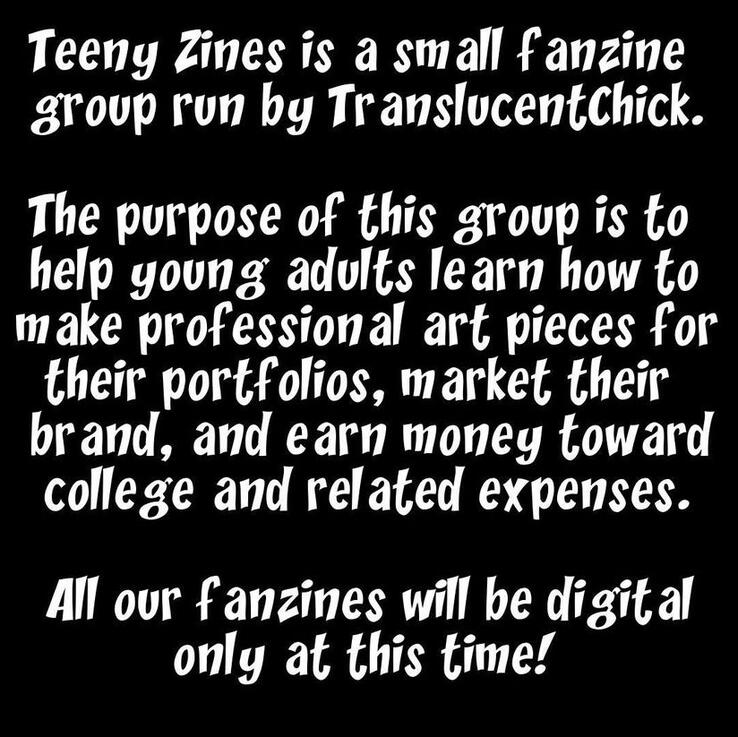 Teeny Zines encourages collaboration, especially in the covers! If you are interested in participating in the cover, you will be assigned a piece of the cover to draw in your own style. Specific instructions will be given internally. Please see our previous zines for examples.18. What is the schedule for this zine?